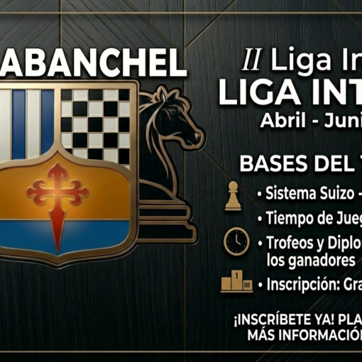 Ya está confirmada la Segunda Edición del Torneo Carabanchess que el Carabanchel Club de Ajedrez celebra en el Centro Comercial Islazul, del Viernes 5 al Domingo 7 de Abril se celebrarán: 1 torneo infantil sub-14, 1 Gran Torneo Open, 1 Torneo Escolar de Ajedrez Gigante, Simultáneas con la Maestra Fide María Rodrigo además de muchas actividades paralelas como talleres, charlas, presentaciones de libros, juegos, etc.